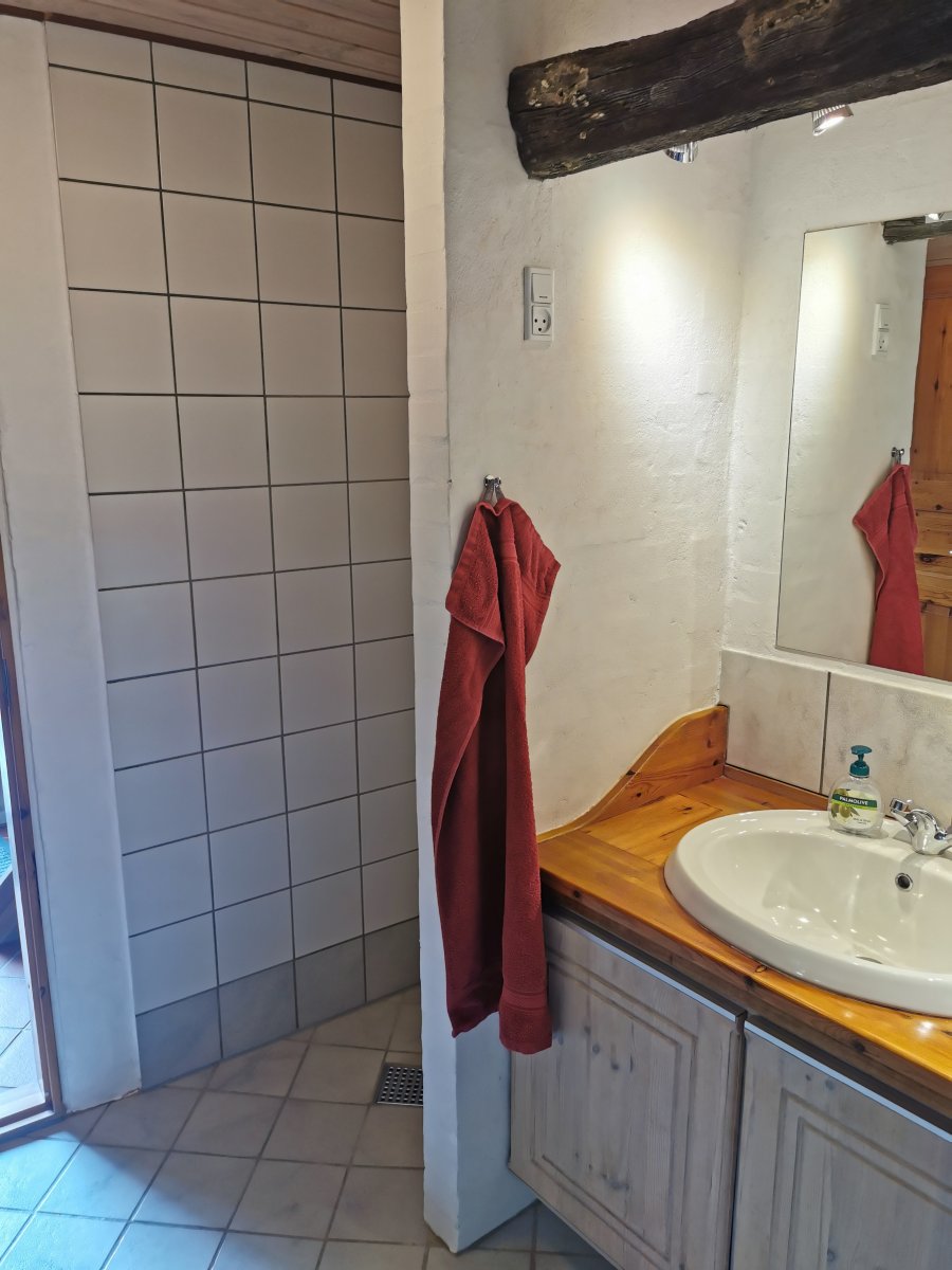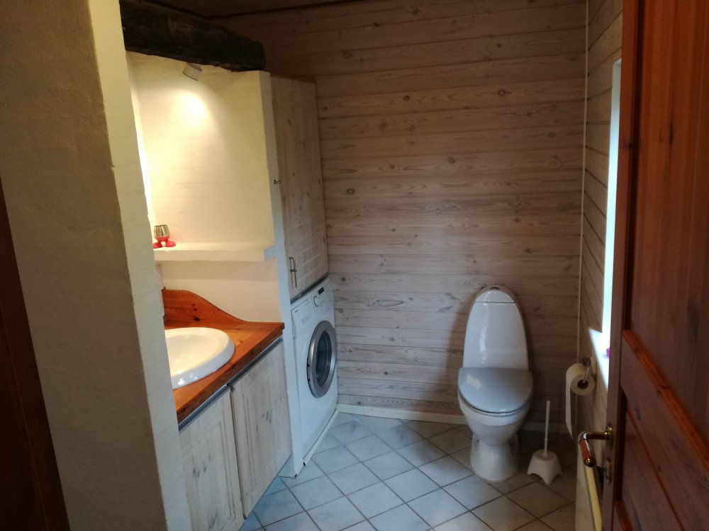 Bad: Dusche, Waschbecken, WC, Staubsauger, Fussbodenheizung